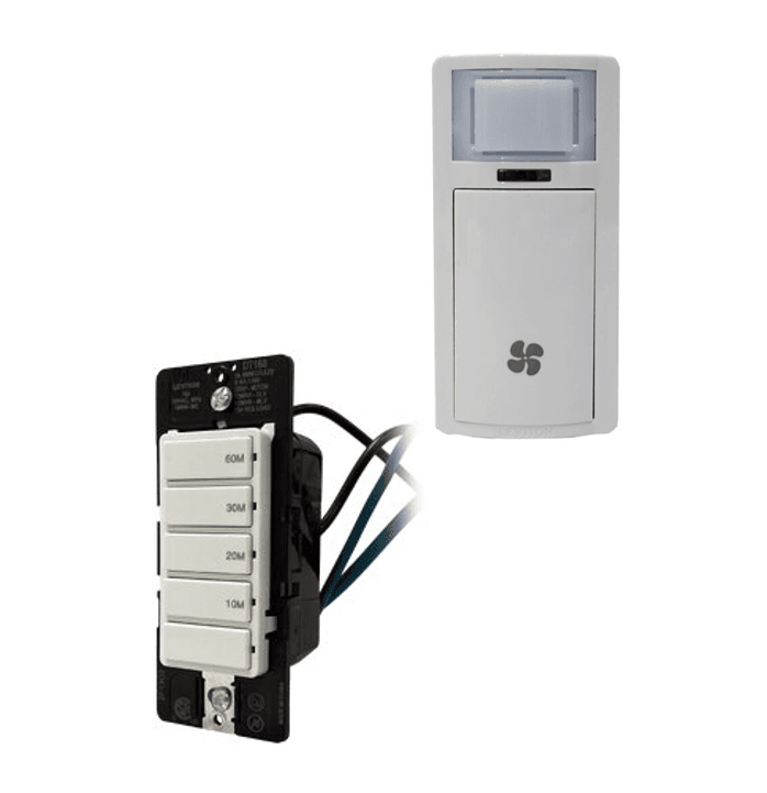 The sensor will automatically turn the fan ON upon detecting excess humidity. The sensor will continue to monitor the ambient air and automatically turn the fan OFF when the humidity level has dropped. Timer settings can be selected to 10-, 20-, 30-, or 45-minute levels.